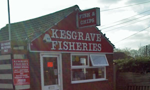 You're right, it's a chippy, though there's something admirable about that "fisheries" phrasing. No piscine puns in this particular parish, ta very much. Plenty o' parking -- patrons only, says the sign -- and be sure to keep one fish-eye on that bike lane stroke path stroke pavement. Can be perilous cycling past this place (hey, no "i" before the "c") around 6pm when you can easily get yourself battered.