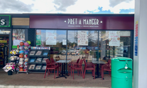 So it came to pass that in early December 2026, the latest Pret A Manger -- organic coffee, freshly made food -- opened its doors, only the second branch in Suffolk. First and only branch until now is at the Barton Mills Fiveways Roundabout on the A11 which I very much felt the need to visit last year. Wee bit underwhelming, honestly, since it was squeezed into an Esso garage with no seats of its own. Martlesham, though, has seating both inside and out.