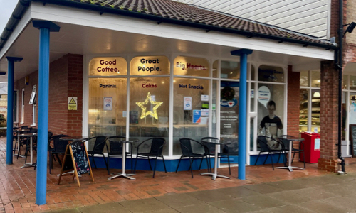 Place opened a few months back, I'd told him, as mentioned on the local BBC news; just hope they're still going. I reached 21 Young Hearts about 13:05, and there were signs of life everywhere: in fact, said Andy, speaking between mouthfuls of meaty bap, it was packed when he arrived. Which is all very lovely 'cos they're doing great work here with their mission "to empower young individuals with disabilities by providing them with meaningful employment opportunities" (bit like the old Town Hall Tea Room and the St Lawrence centre to name but two).